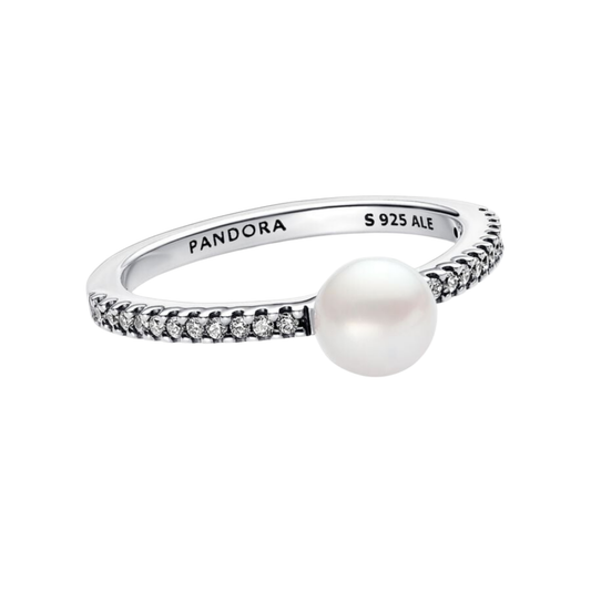 Anillo Pandora Perla Cultivada de Agua Dulce y Pavé - BeJoyasVintage