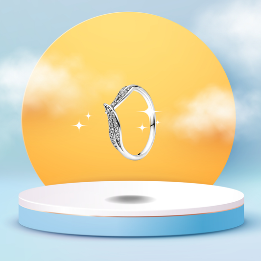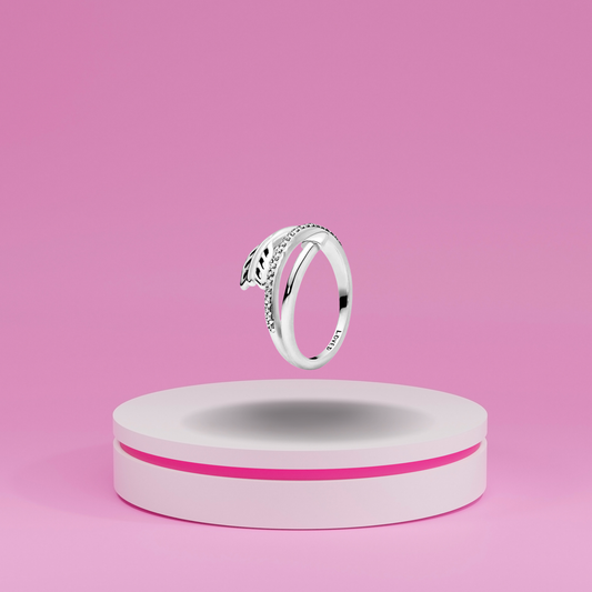 Anillo Abierto con Diseño de Hoja y Piedras Brillantes en Plata de Ley 925 para Mujer