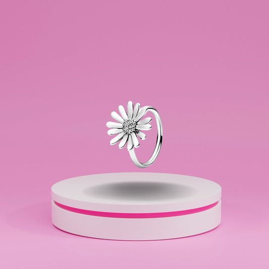 Anillo Abierto con Diseño de Margarita y Detalles Brillantes en Plata de Ley 925 para Mujer