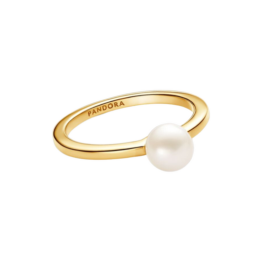 Anillo Pandora Perla Cultivada de Agua Dulce Color Oro - BeJoyasVintage