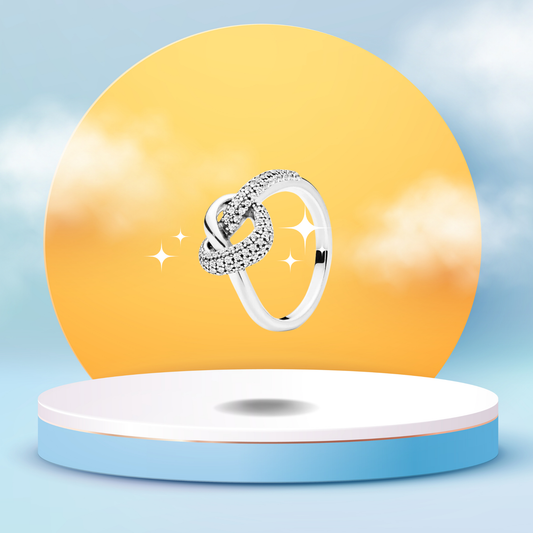 Anillo con Diseño de Nudo de Unión y Piedra Brillante en Plata de Ley 925 para Mujer