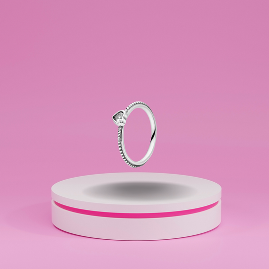 Anillo de Banda Delicada con Corazón Transparente en Plata de Ley 925 para Mujer