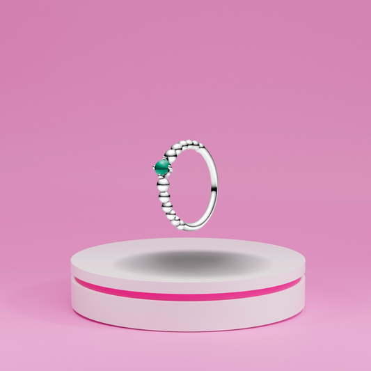 Anillo de Banda de Esferas con Piedra Verde Central en Plata de Ley 925 para Mujer