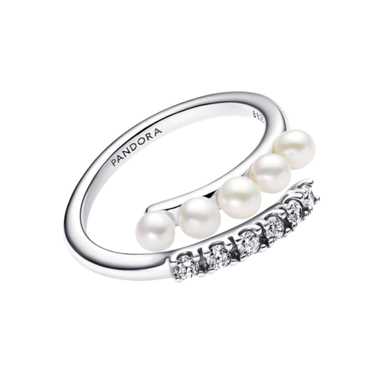 Anillo Pandora Abierto Perlas Cultivadas de Agua Dulce y Pavé - BeJoyasVintage
