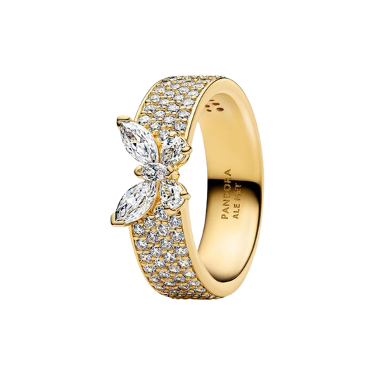 Anillo Pandora Ancho Mariposa Brillante Color Oro - BeJoyasVintage