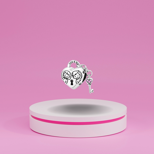 Charm Colgante Corazón con Llave y Grabado "You & Me" en Plata de Ley 925 Compatible con Pulseras Europeas