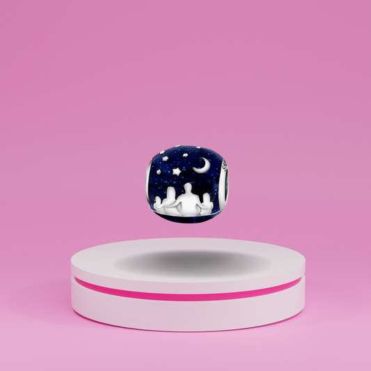 Charm Colgante Familia Bajo Cielo Estrellado en Plata de Ley 925 Compatible con Pulseras Estilo Europeo
