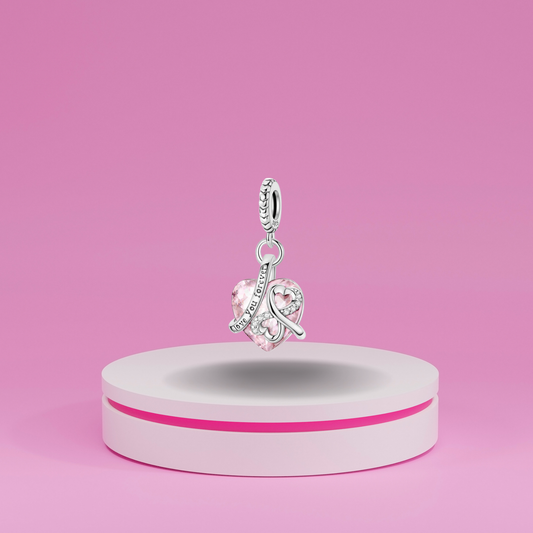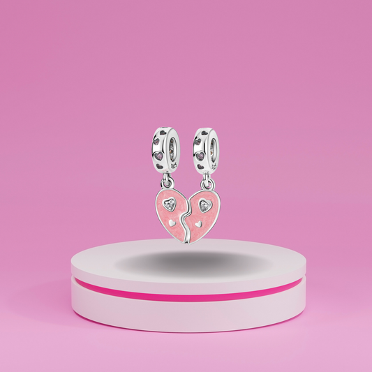 Set de Charms Colgantes Corazón Dividido Rosa con Detalles Brillantes en Plata de Ley 925 Compatibles con Pulseras