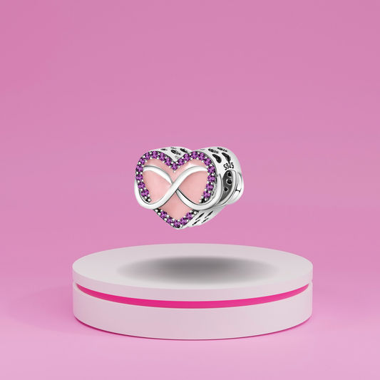 Charm Corazón Infinito con Circonitas Moradas y Esmalte Rosa en Plata de Ley 925 Compatible con Pulseras Europeas