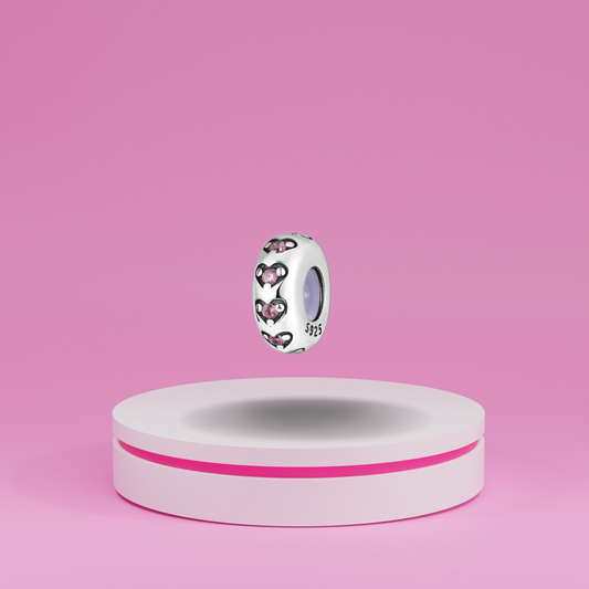Charm Separador con Corazones y Piedras Rosas en Plata de Ley 925 Compatible con Pulseras Tipo Europeo