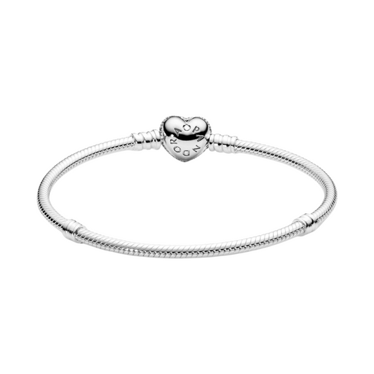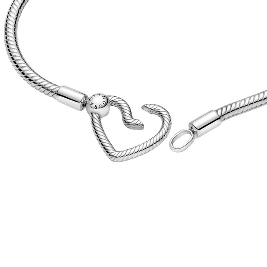 Pulsera Pandora Moments Cadena de Serpiente con Hebilla de Corazón En Color Plata - BeJoyasVintage