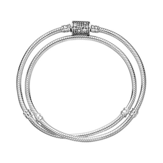 Pulsera Pandora Moments en plata de ley Cadena de Serpiente con Cierre Doble Envoltura - BeJoyasVintage