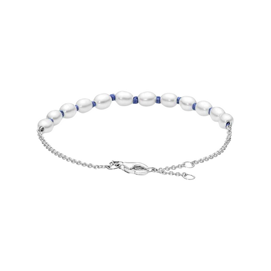 Pulsera Pandora Cordón Azul Con Perlas Cultivadas De Agua Dulce - BeJoyasVintage