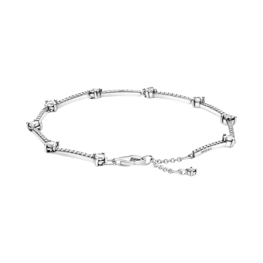 Pulsera Pandora En Plata de Ley Barras Brillantes en Pave - BeJoyasVintage