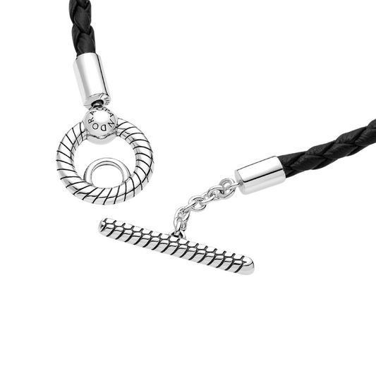 Pulsera Pandora Moments de Cuero Trenzado con Cierre en forma de T - BeJoyasVintage