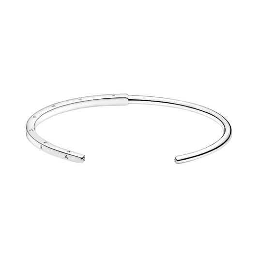 Pulsera Pandora Rígida Pandora Signature I-D Abierta Color Plata - BeJoyasVintage