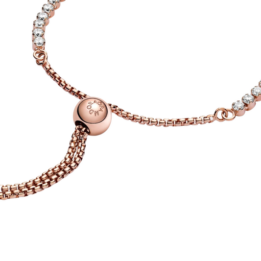 Pulsera Pandora Tenis Deslizante Brillante en Color Oro Rosa - BeJoyasVintage