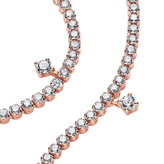 Pulsera Pandora Tenis Gotas Brillantes en Color Oro Rosa - BeJoyasVintage