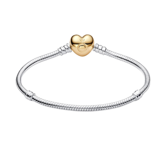 Pulsera Pandora de Cadena de Serpiente con Cierre de Corazón en Color Oro - BeJoyasVintage