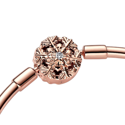 Pulsera Pandora Moments Pandora Copo de Nieve Brillante en Color Oro Rosa - BeJoyasVintage